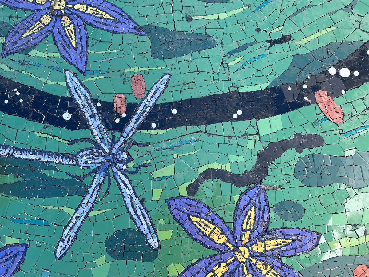 Artist: Tom Sevil (AKA Civil) in consultation with Wurundjeri Elder Aunty Judy Nicholson. Mosaic work by Enver Camdal and Hacer Koca of Camdal Atelier Year: 2021 - 2023 Location: Eltham North Adventure Playground, The Parade, Eltham North